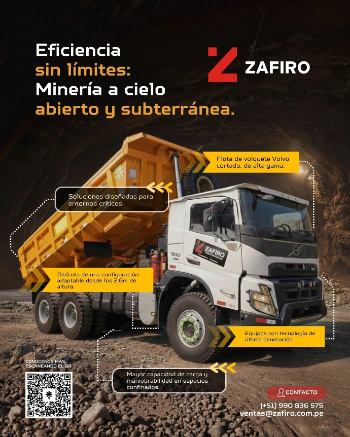 En Zafiro Equipos y Servicios S.A.C. brindamos servicio de alquiler de volquetes para minería, respaldado por una flota de volquetes Volvo FMX diseñados para operar de manera eficiente y segura en condiciones exigentes de mina.
