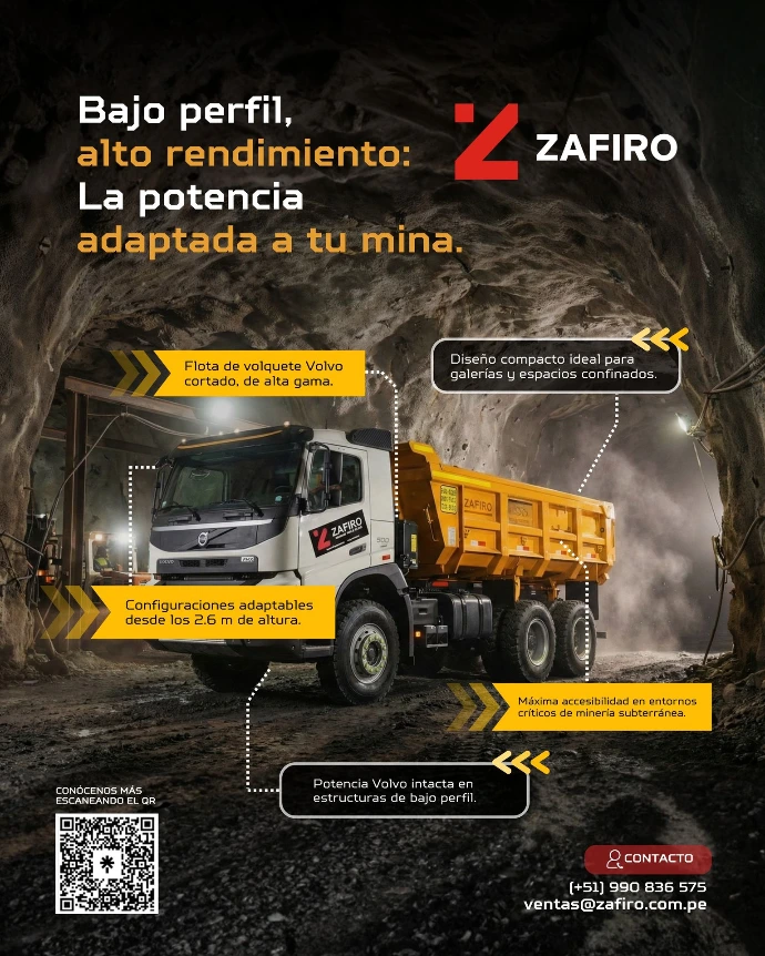 Volquetes Volvo adaptados para operar en minería subterránea y galerías de baja altura sin comprometer potencia ni capacidad de carga.